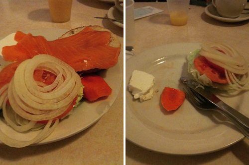 Finally, it might be obvious that other than the bagel, which was eaten at lunchtime, there are no food shots. no artic char with onion glass, no Pulpo a Feira con Cachelos, no passionfruit marshmallow… this is the curse of an iphone battery that cannot last a single day. where in Los Angeles there is always the car to plug into, in NY a semi-functioning battery will bring nothing but darkness after the sun goes down.